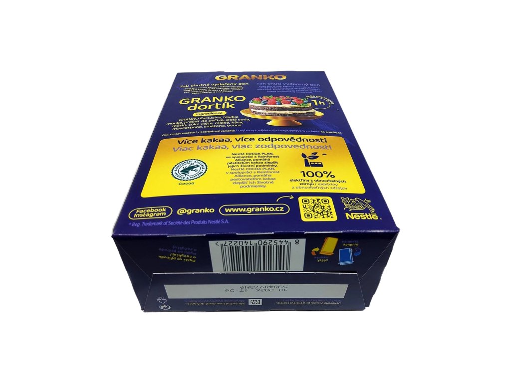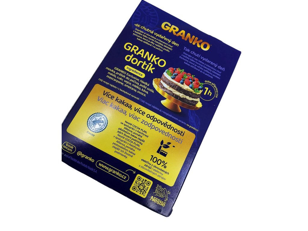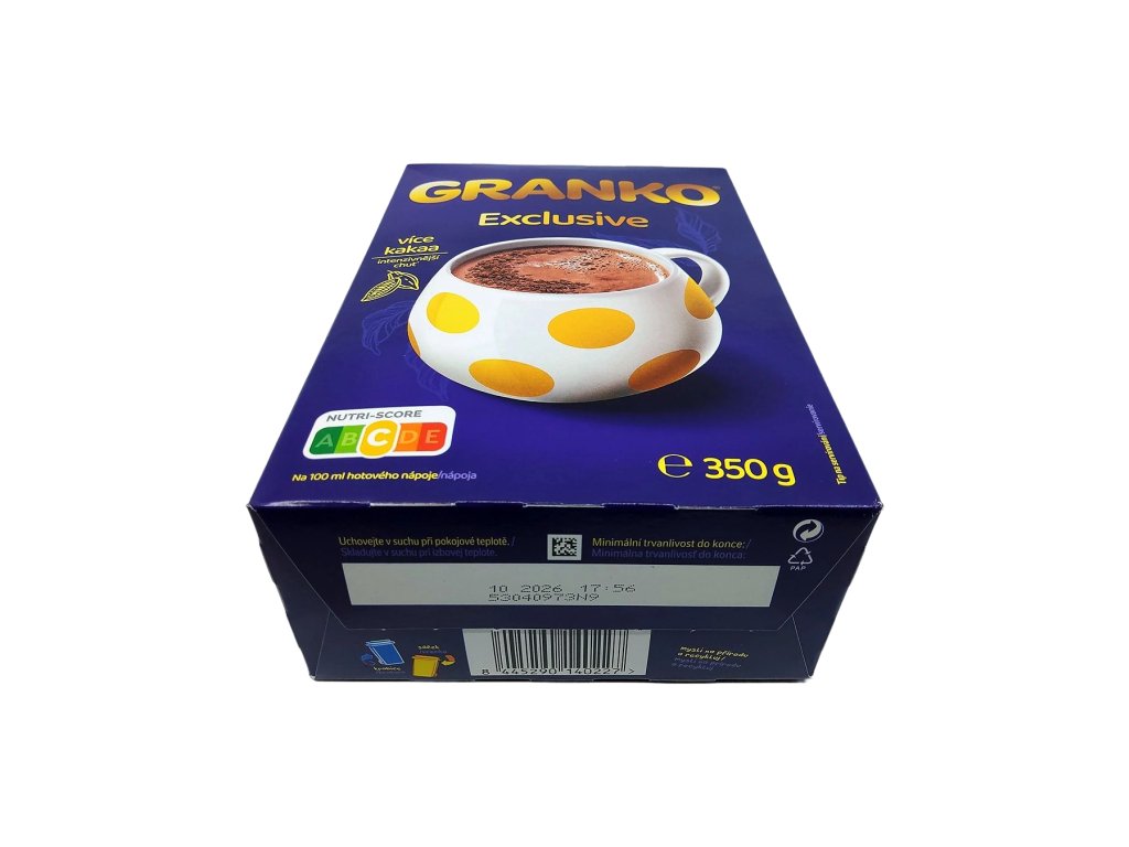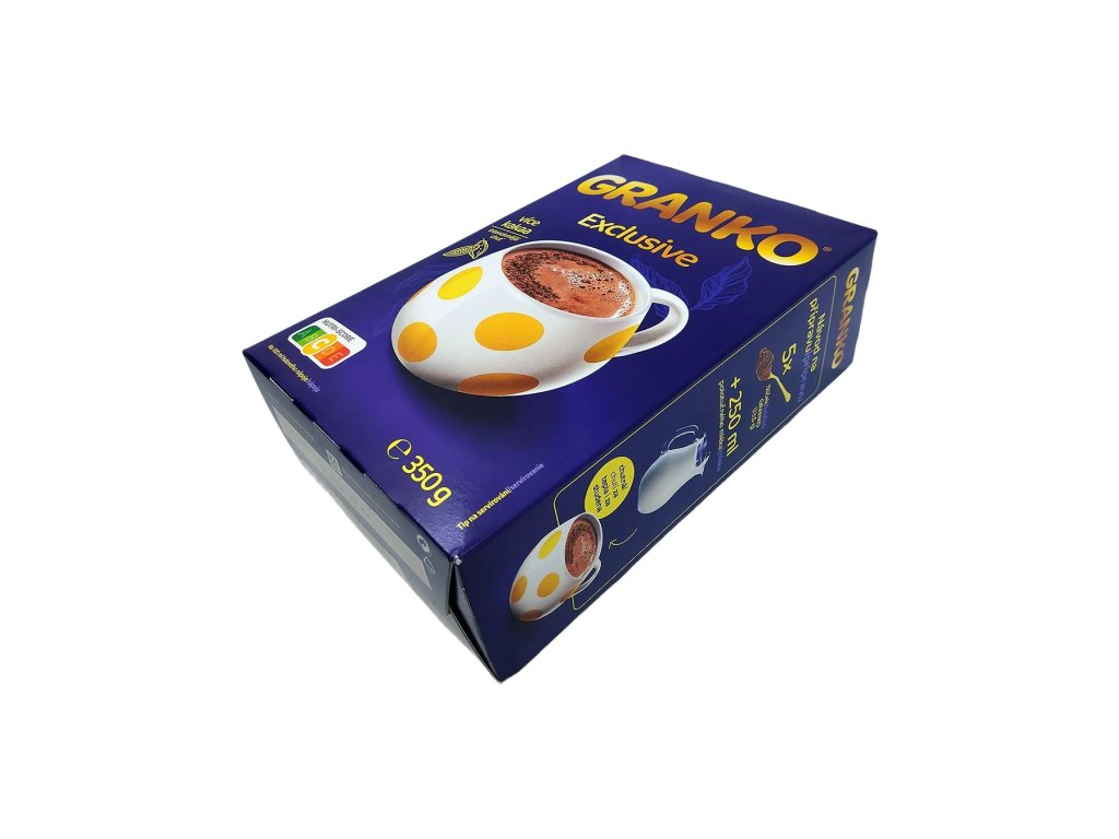 Díky praktickému 350 g balení máte vždy po ruce zásobu na množství šálků a zároveň si zachovává čerstvou vůni i chuť. Nápoj se hodí i do kuchyně – do kaší, dezertů, palačinek či domácích krémů, kde dodá typický kakaový charakter a příjemnou sladkost. Granko Exclusive tak není jen nápoj, ale malý okamžik pohody, který si můžete dopřát kdykoli během dne – přesně tehdy, když máte chuť na něco hřejivého, jemného a spolehlivě dobrého.