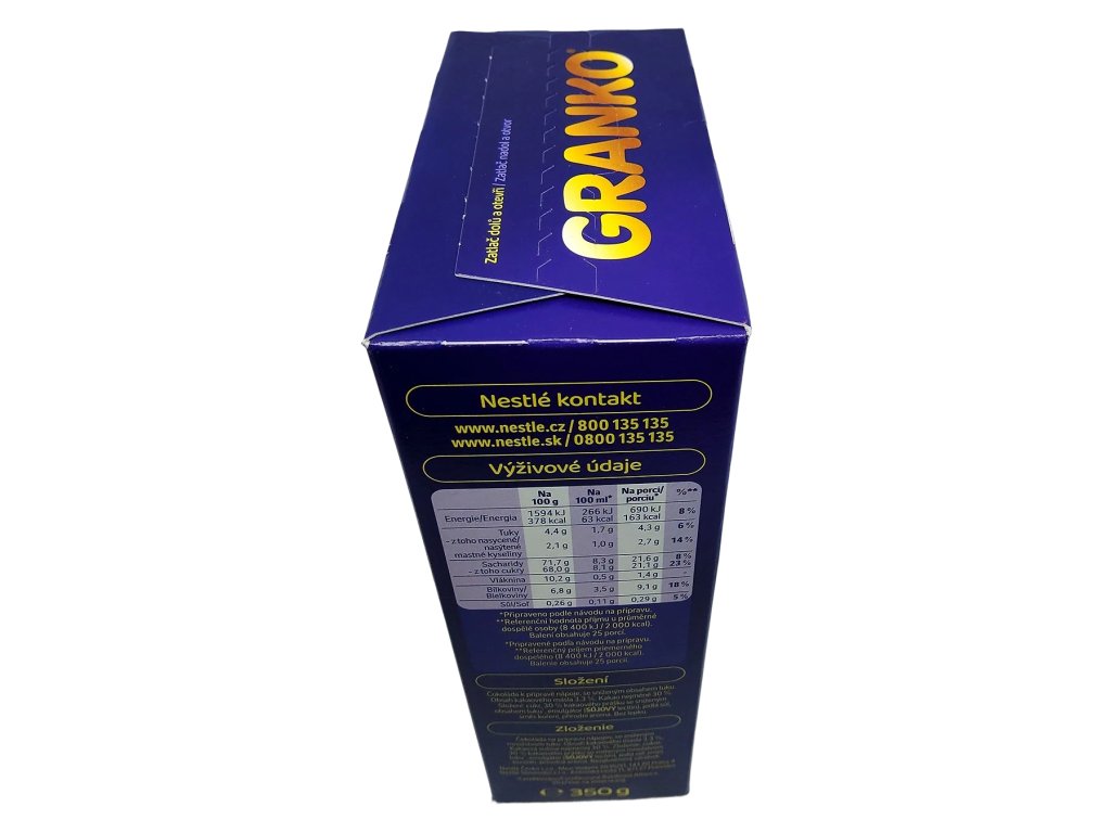 Příprava: 5 lžiček (13,5 g) Granka + 250 ml teplého nebo studeného polotučného mléka.