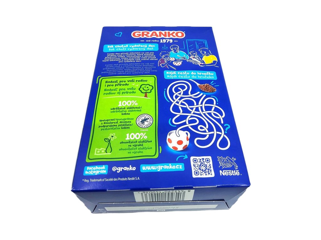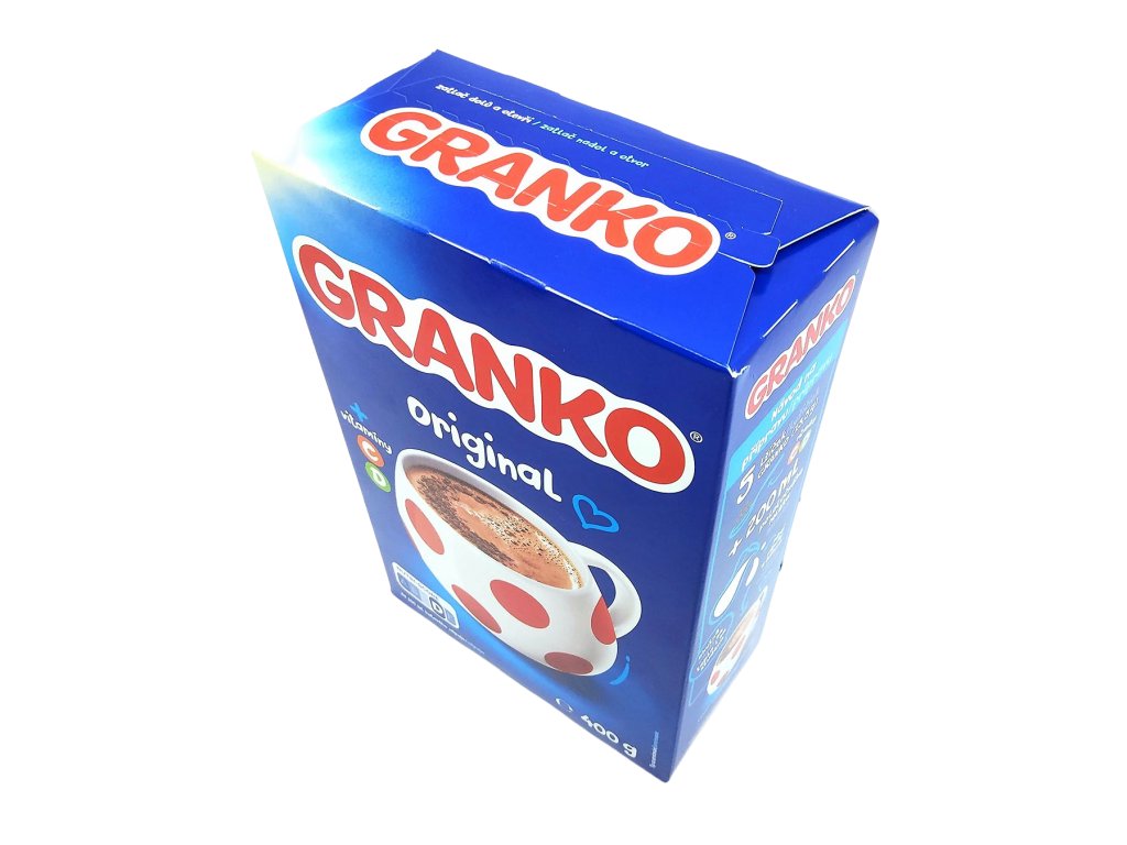 Připravte si s Grankem chutnou snídani nebo rychlou svačinu. Stačí zamíchat do studeného nebo teplého mléka a můžete si vychutnat kakaový nápoj, který je zdrojem vápníku a plnohodnotných bílkovin. S vitaminem D a C, které podporují imunitní systém a přispívají k vstřebávání vápníku pro normální růst a vývoj kostí u dětí. Granko již více než 40 let přispívá společně s pestrou stravou a vyváženým životním stylem ke šťastnému a hravému dětství. Granko – pořád takové, jak ho máte rádi.