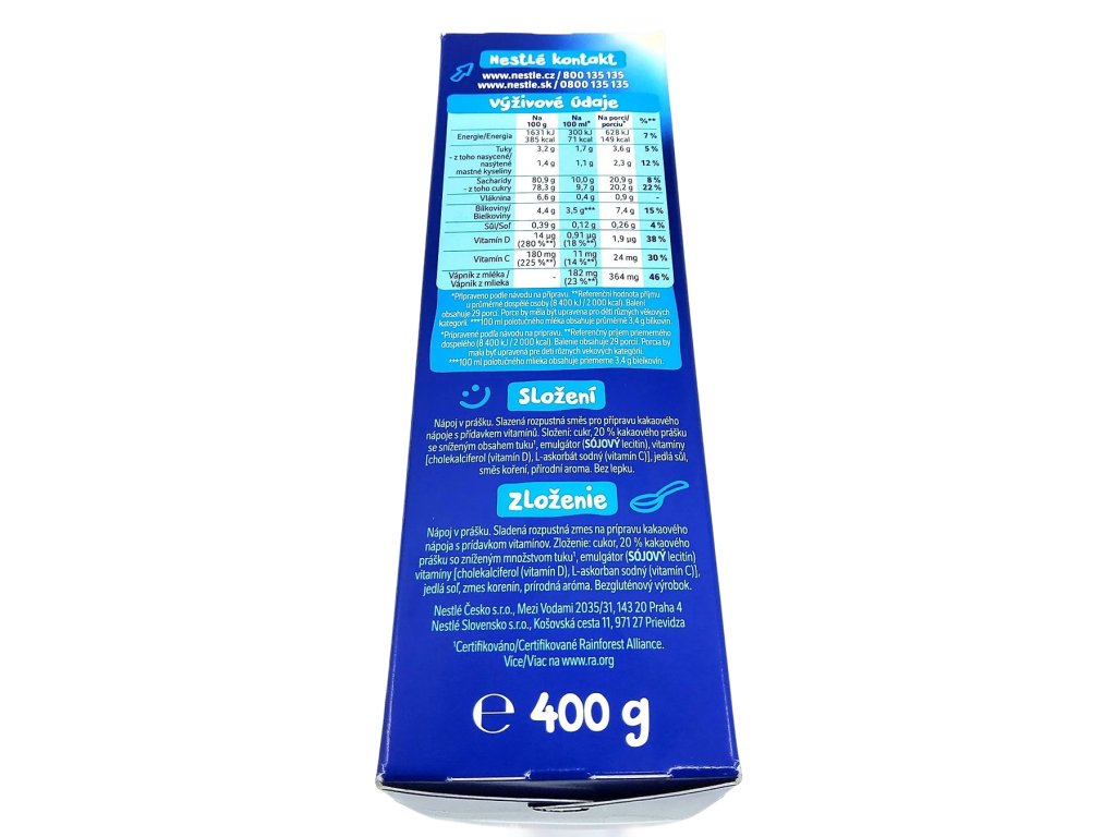 - Vďaka vyváženému pomeru živín má kakaový nápoj hodnotenie Nutri-Score A