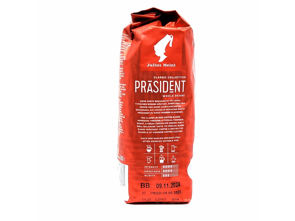 Zapůsobí na vás typickou vídeňskou praženou, svěží čokoládovou aromou a vyváženou chutí. Její speciální směs činí z kávy Präsident výrazný příklad vídeňské kávové kultury.