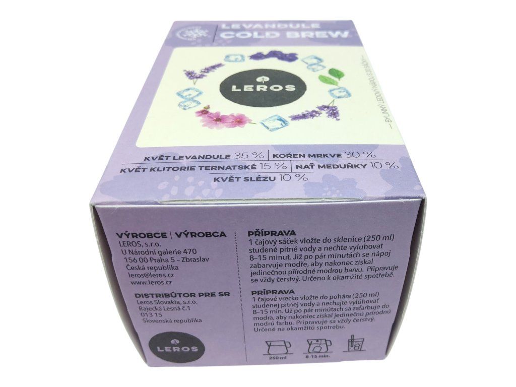 O vizuální efekt se postarají květiny klitorie a slézu, které dodávají nápoji nádhernou, přírodní modrou barvu – skutečný unikát, který zaujme na první pohled. Každá sklenice tak působí jako malé umělecké dílo, které si zamilujete ještě dříve, než se ho napijete. Leros Cold Brew Levandule je ideální volbou pro každého, kdo hledá něco výjimečného – spojení relaxace, chuti a krásy v jedné sklenici. Dopřejte si chvíli pro sebe, zpomalte a nechte se unést jemnou silou bylin, které vás osvěží nejen fyzicky, ale také mentálně.