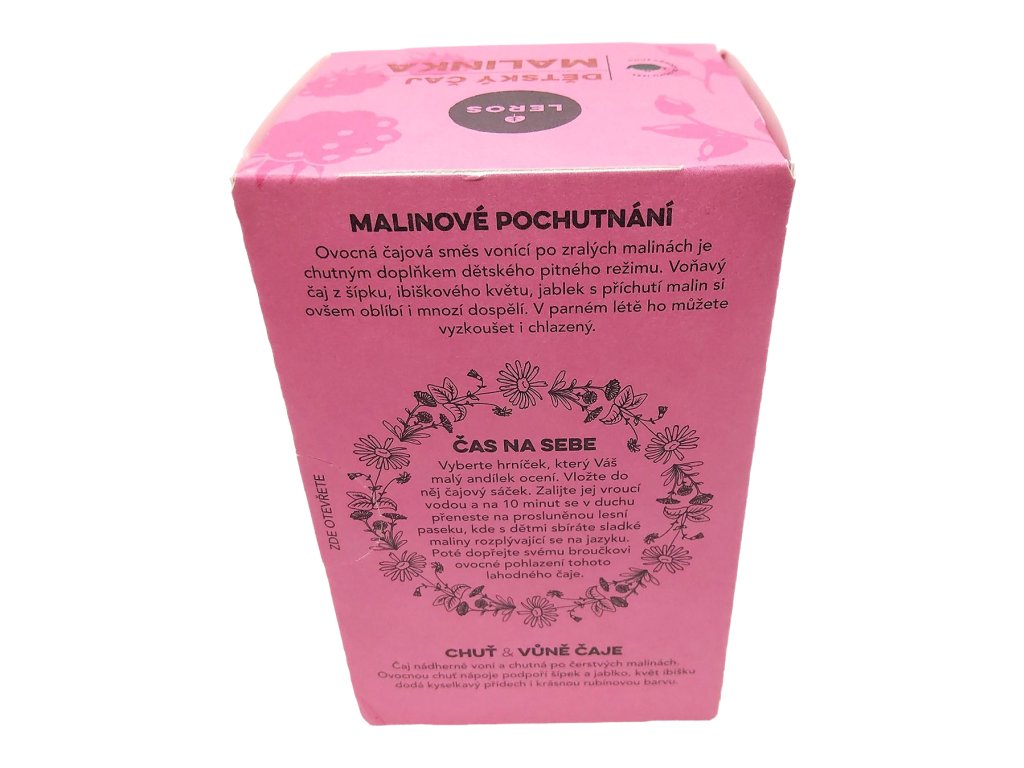 Bylinný ovocný čaj, který je určen pro děti a vyroben s důrazem na jemnost a přirozenou chuť. Tento čaj je ideální pro děti, neboť neobsahuje kofein ani žádné umělé přísady. Hlavní složkou je malina, která dodává čaji lahodnou ovocnou chuť a příjemnou vůni.