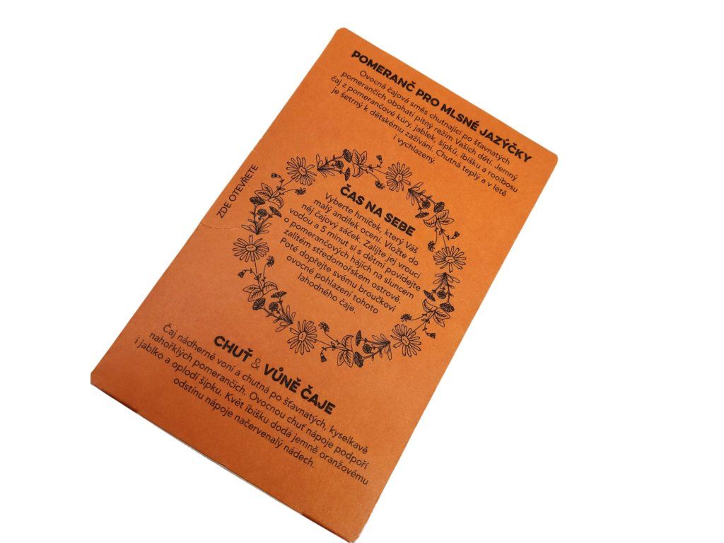 Hravá ovocná směs, která přemění každé pití na malý radostný rituál plný vůně a barev. Už při otevření balení vás přivítá svěží aroma šťavnatých pomerančů, které okamžitě navodí pocit sluncem zalitého ovocného sadu. Tento jemný čaj je pečlivě vytvořen s ohledem na dětské potřeby – kombinuje pomerančovou kůru, sladká jablka, šípky, ibišek a rooibos, díky čemuž je šetrný k dětskému trávení a vhodný ke každodennímu popíjení.