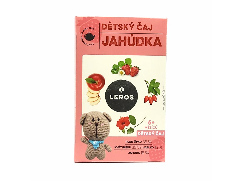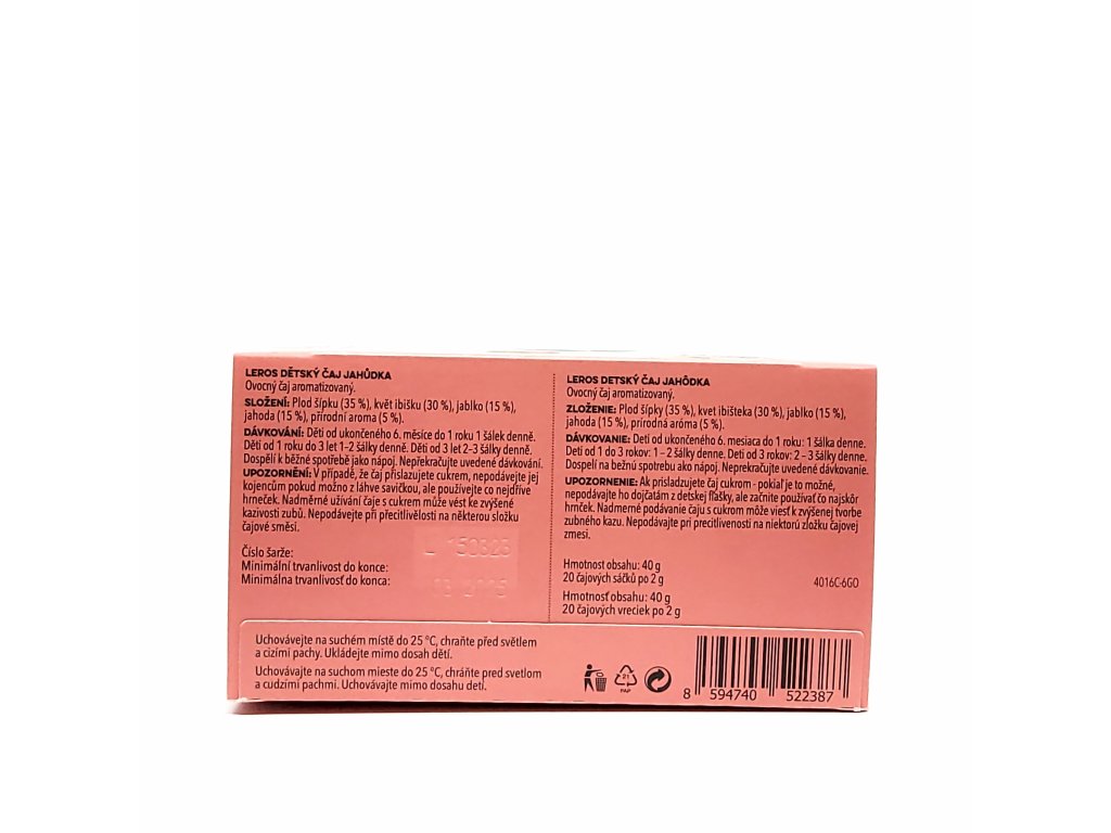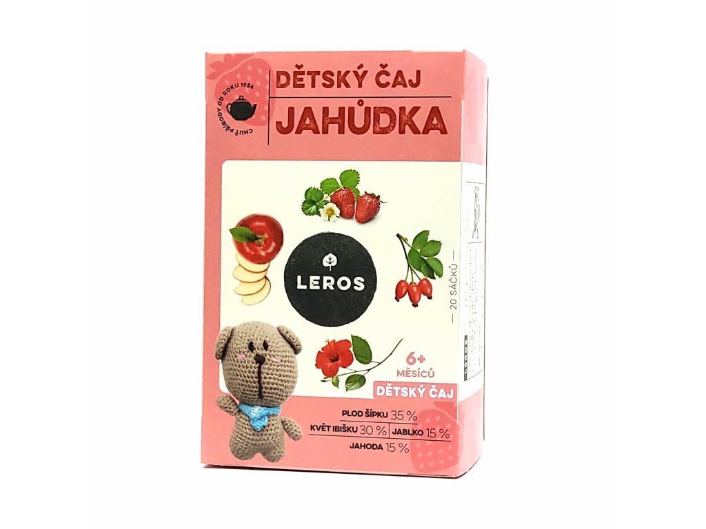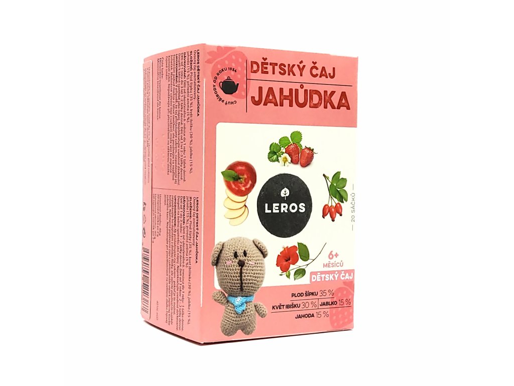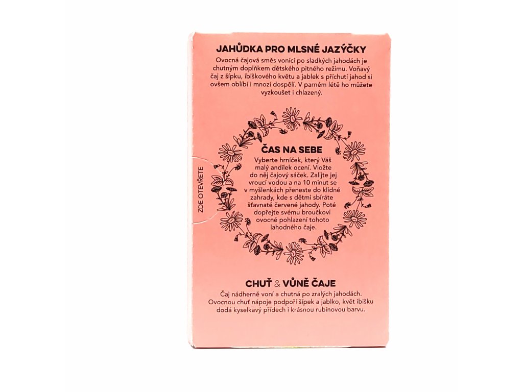 Ovocná čajová zmes voňajúca po sladkých jahodách, vhodná k doplneniu pitného režimu Vašich detí.