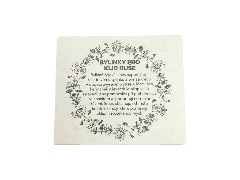 Složení: nať meduňky (55%), květ heřmánku (30%), šištice chmele (5%), kořen kozlíku (5%), květ levandule (5%)