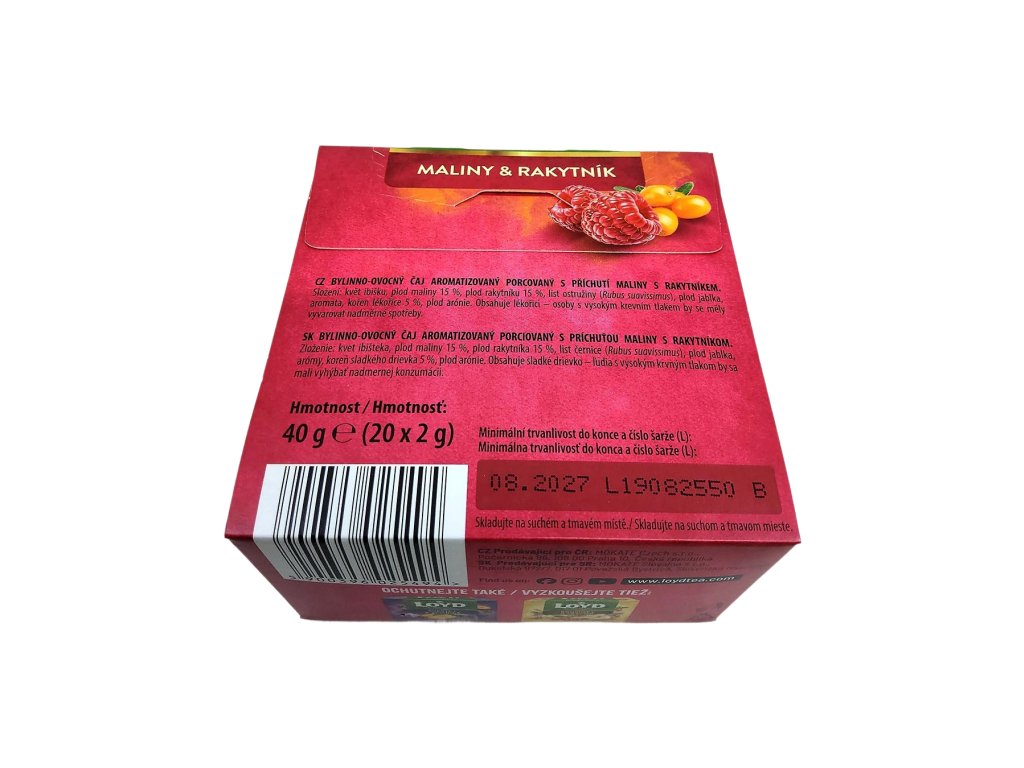 Maliny dodávajú čaju sladkastý, ovocný charakter s jemne kyselkavým dozvukom, ktorý príjemne pohladí zmysly a navodí pocit domácej pohody. Ich chuť je hravá, svieža a nostalgická – ako letné popoludnie v záhrade. Rakytník, známy ako „zlatý poklad severu“, pridáva do tejto zmesi výraznú, citrusovo-kyslastú hĺbku a výnimočný obsah vitamínu C, čím robí z čaju nielen chutný, ale aj funkčný nápoj, ktorý podporuje imunitu a vitalitu tela.