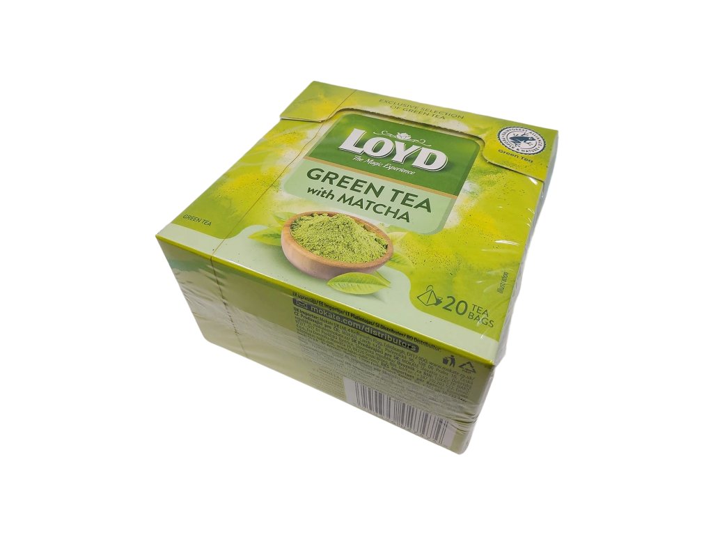 Loyd čaj Zelený s příchutí matcha je zabalen v praktickém balení s 20 sáčky, takže si jej můžete vychutnávat denně – ať už jste doma, v práci nebo na cestách.
