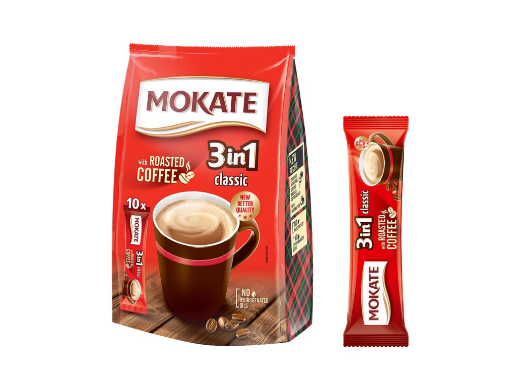 Mokate 3v1 10x17g - instantní kávový nápoj v prášku Instantní kávová směs, která kombinuje kávu, sušené mléko a cukr do jednoho pohodlného balení. Tento produkt je určen pro ty, kteří si chtějí rychle a jednoduše připravit chutnou kávu bez potřeby přidat další ingredience. Mokate 3v1 nabízí vyváženou chuť s jemnou sladkostí a krémovou texturou, což je ideální pro ty, kdo preferují jemnější a sladší kávový nápoj. Složení: cukr, glukózový sirup, kokosový olej, káva (instantní káva 8,95%), jemně mletá pražená káva (0,05%), mléčné bílkoviny, stabilizátory: citrany sodné, fosforečnany draselné, aroma.
