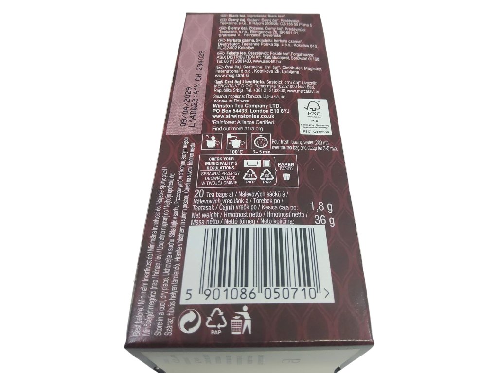 Sir Winston Tea English Breakfast je pozvánkou do světa klasiky, která nikdy nevyjde z módy – šálek tohoto čaje je vždy spolehlivým společníkem, který dokáže povzbudit, potěšit a vnést do každodenních chvil kousek tradiční čajové elegance.