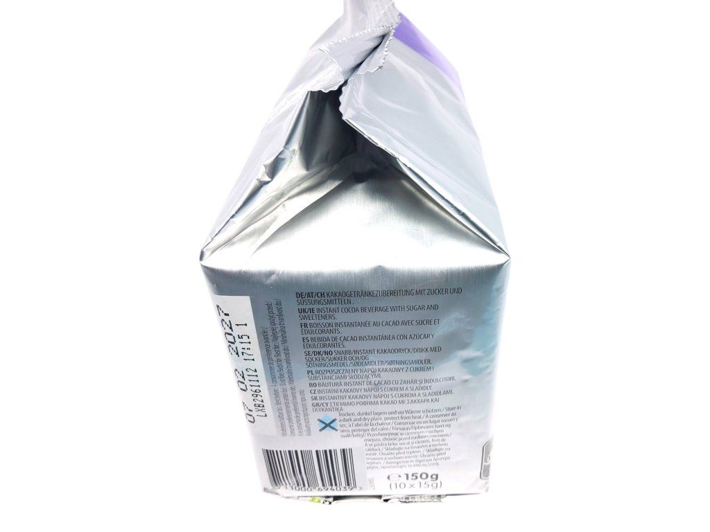 Složení: sušené odstředěné mléko (30%), cukr, kakaový prášek se sníženým obsahem tuku (16,5%), zcela hydrogenovaný kokosový olej, glukózový sirup, aroma (mléko), sůl, stabilizátor (E340), protihrudkující látka (50)