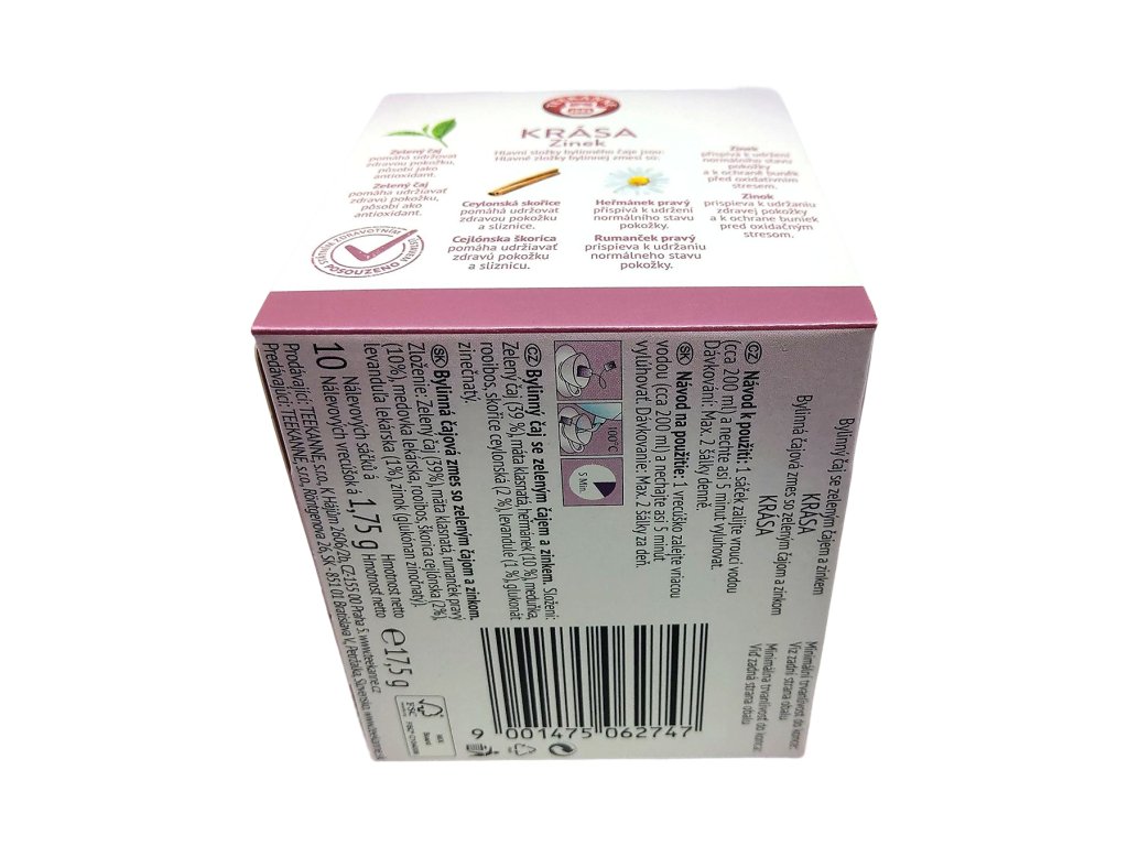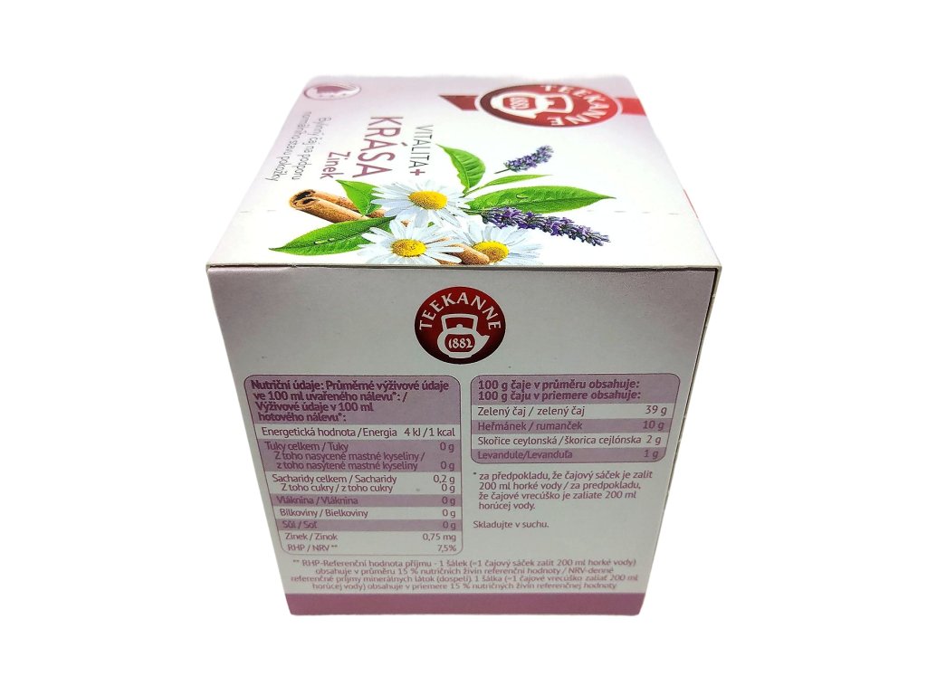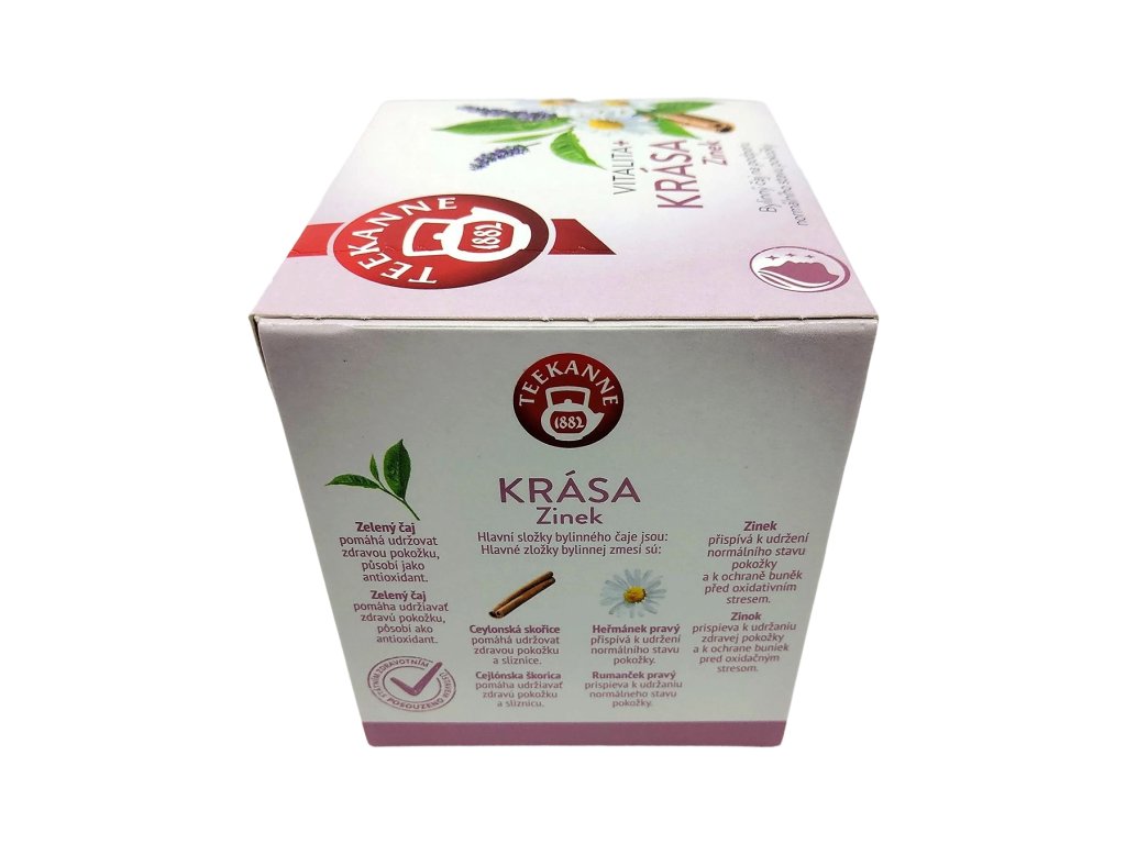 Neodmyslitelnou součástí této směsi je zinek, který přispívá k udržení zdravé pokožky a pomáhá chránit buňky před oxidačním stresem. Každý doušek Teekanne Krása & Zinek je tak malou dávkou péče o tělo a pohody mysli – přináší harmonii mezi chutí, vůní a blahodárnými účinky bylinek a minerálů.